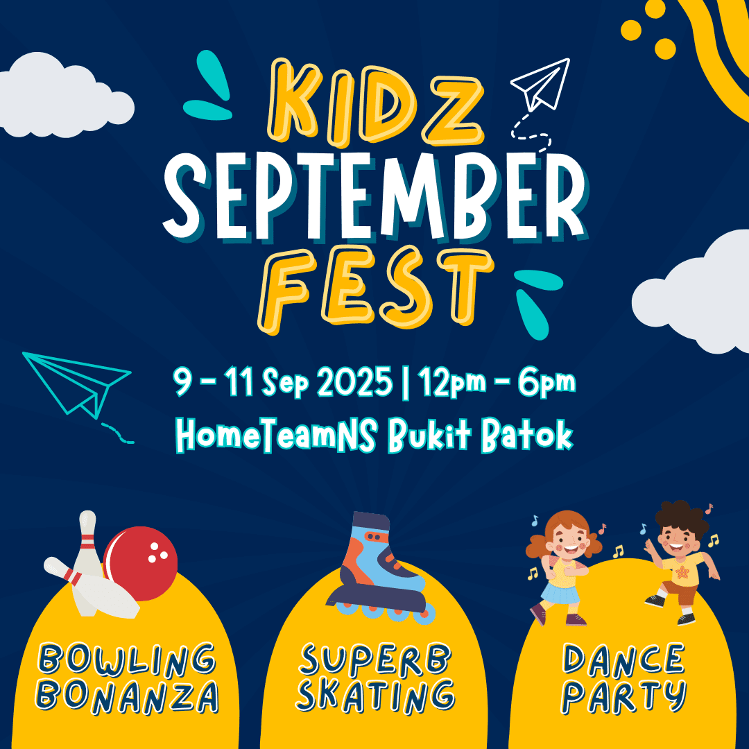 Berseronok bersama seisi keluarga di Kidz September Fest! Acara tiga hari di HomeTeamNS Bukit Batok ini padat dengan pelbagai aksi yang menghiburkan selain pembelajaran tanpa henti! Daripada boling, luncur kasut hinggalah kelas tarian. Yang pasti, setiap hari menjanjikan pengembaraan sukan yang menyeronokkan untuk si kecil!