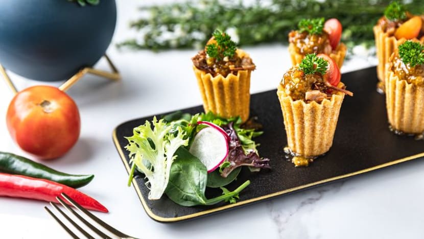 Untuk hidangan pembuka selera pula, terdapat Kueh Pie Tee yang diberi nama Twl Vol- Au-Vent dan Sweet Potato Fries lengkap dengan sambal belacan mayo.
