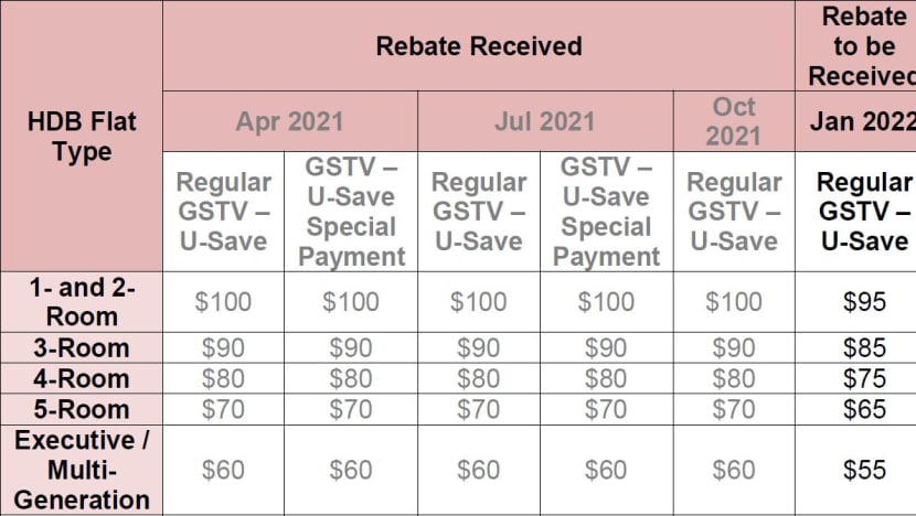Bayaran tetap dan bayaran khas itu secara keseluruhannya berjumlah S$460 juta dalam rebat U-Save bagi tahun kewangan ini, menurut MOF.