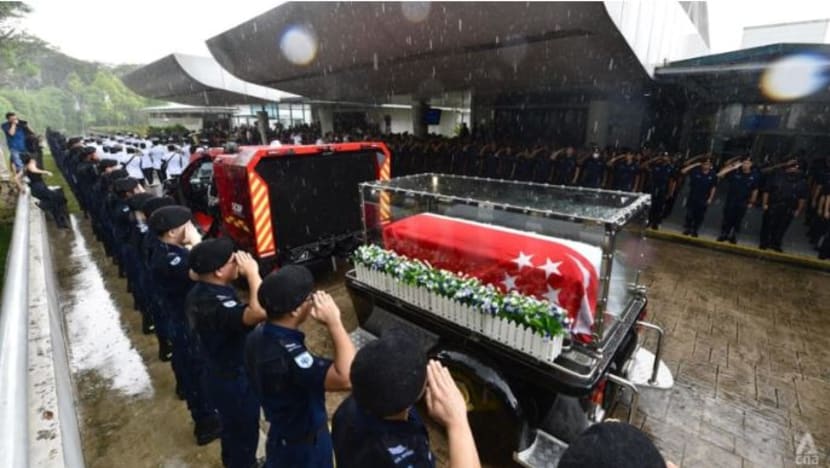 SINGAPURA: Beratus-ratus ahli keluarga, rakan dan pegawai serta kakitangan Pasukan Pertahanan Awam Singapura (SCDF) hadir di Krematorium Mandai pada Selasa (13 Dis) untuk mengucapkan selamat tinggal kepada anggota bomba yang meninggal dunia ketika memadamkan kebakaran di Henderson Road.