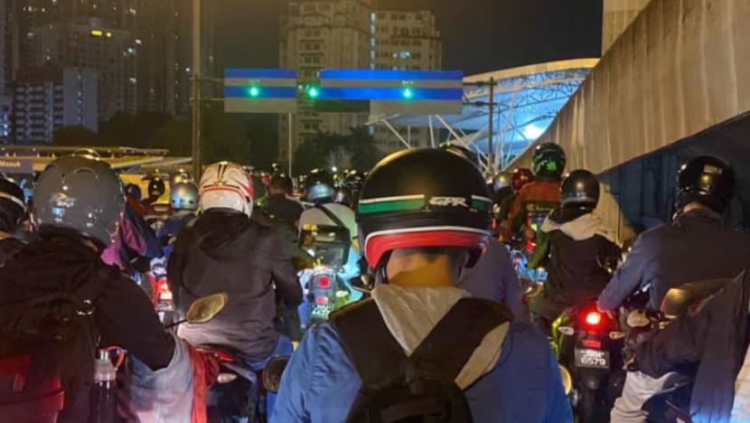 Terdapat video yang menunjukkan penunggang motosikal terperangkap dalam kesesakan sekitar pukul 8.30 pagi.