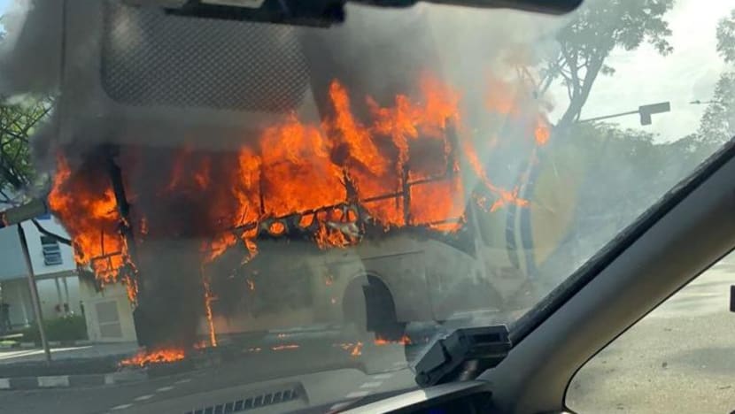 SINGAPURA: Sebuah bas penumpang terbakar di persimpangan antara Portsdown Road dengan one-north Gateway pagi tadi (24 Feb).