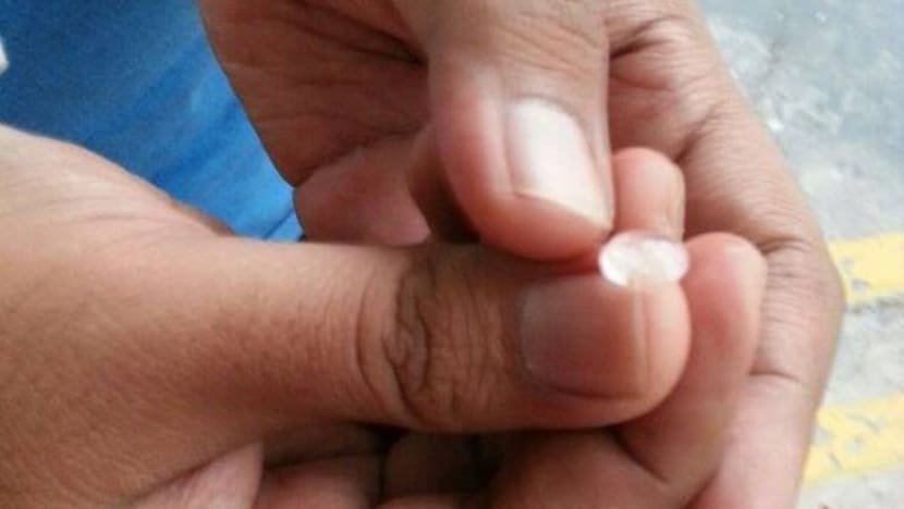 Seorang pengguna Facebook juga dilihat mengutip beberapa ketulan air batu, sebesar hujung jarinya.