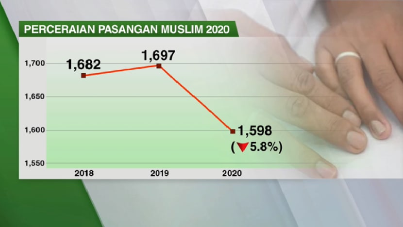 Sekitar 1,598 perkahwinan Islam terlerai tahun lalu berbanding sekitar 1,697 pada tahun 2019 - iaitu kemerosotan sekitar 5.8 peratus.