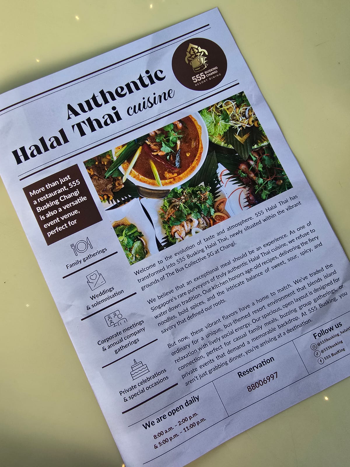 Usahawan berani ini secara rasmi membuka pintu restoran baharunya, 555 Busking Halal Thai, yang terletak di 5 Telok Paku Rd kepada orang ramai pada Ahad (11 Jan).