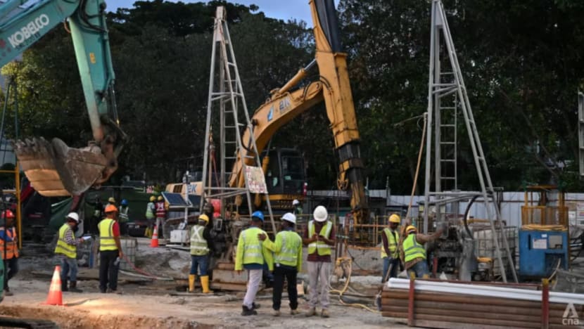 Kerja-kerja dijalankan di kawasan tanah jerlus di Tanjong Katong Road South pada 28 Julai 2025. (Gambar: CNA/Jeremy Long)